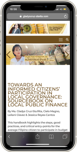 Ma. Gladys Cruz-Sta. Rita, MPA, CSEE, FICD is a familiar face in the circles of local government administration in the Philippines, having served in key positions in the multi-awarded Provincial Government of Bulacan since 1986 and worked with two (2) of the most highly-acclaimed, post-people-power provincial governors in the country—Roberto M. Pagdanganan and Josefina M. Dela Cruz. She is currently the Secretary General of the Provincial Administrators’s League of the Philippines and is the longest-serving Provincial Administrator in the country today. The author still holds the same position under the administration of newly-elected Governor Joselito R. Mendoza.